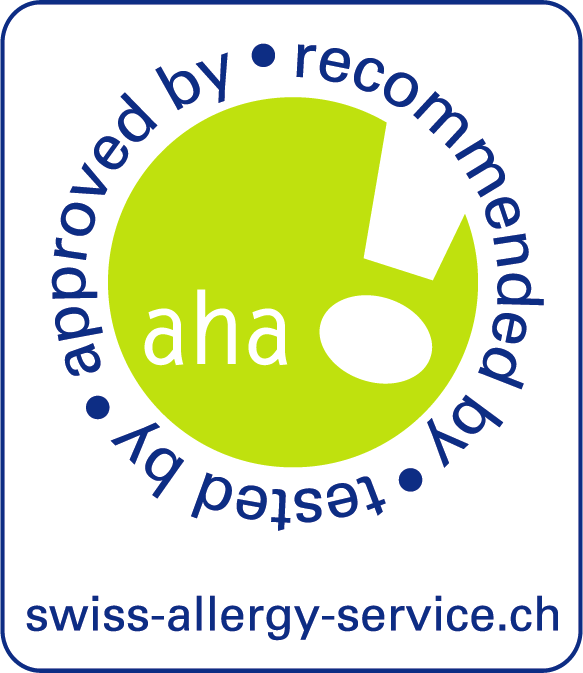 aha! er et allergimærke fra schweiziske Service Allergie Suisse SA, som giver de schweiziske forbrugere mulighed for nemt og trygt at vælge allergivenlige hverdagsprodukter. Læs mere om aha!