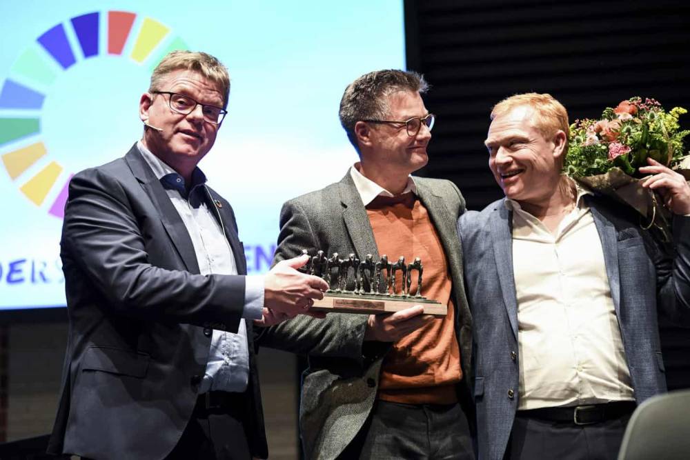 Med prisen fulgte Jan Agerbos skulptur "At løfte i flok", som fint illustrerer, at i DermaPharm arbejder vi tæt sammen med kunder, leverandører og medarbejdere om at skabe gode resultater og gør en forskel.